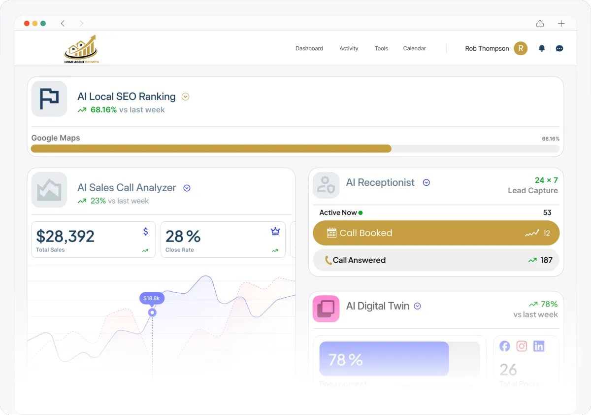 We help Residential Real Estate Agents dominate their local market, capture every buyer and seller opportunity, and scale without adding overhead. Powered by AI that works 24/7.